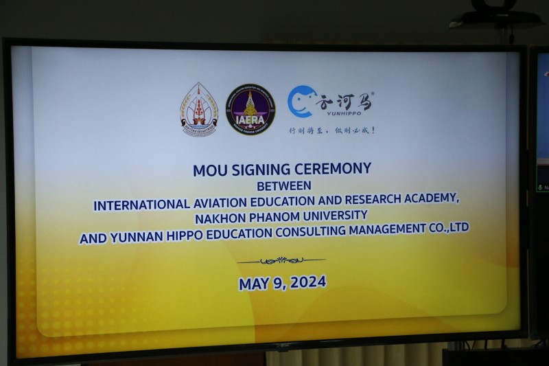 วันที่ 9 พฤษภาคม 2567 เวลา 13.30 น. วิทยาลัยการบิน การศึกษา และวิจัยนานาชาติ มหาวิทยาลัยนครพนม จัดพิธีลงนามความร่วมมือกับ Yunnan Hippo Education Consulting Management Co.,Ltd มณฑลยูนนาน สาธารณรัฐประชาชนจีน เพื่อส่งเสริมความร่วมมือด้านวิชาการ และส่งเสริมให้นักศึกษามีการศึกษาที่สูงขึ้น ในระดับปริญญาตรี หลักสูตรบริหารธุรกิจบัณฑิต (บธ.บ.) สาขาวิชาการจัดการการบิน วิทยาลัยการบิน การศึกษา และวิจัยนานาชาติ