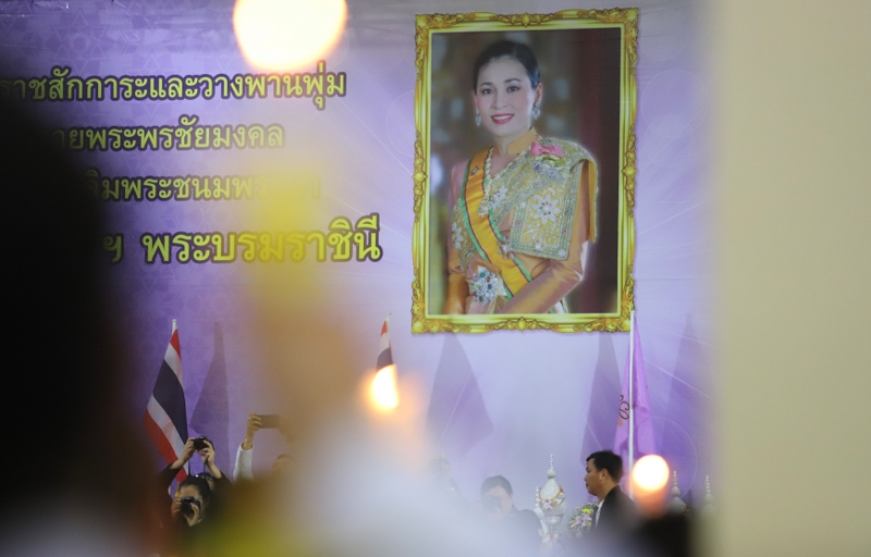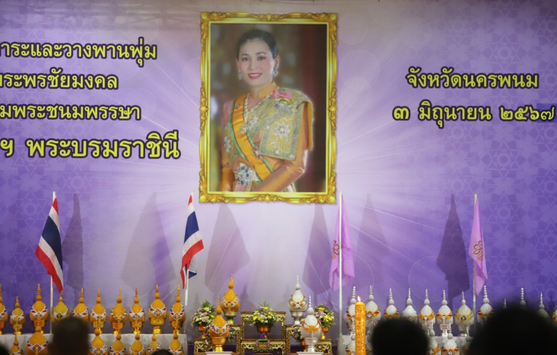 นายวันชัย จันทร์พร ผู้ว่าราชการจังหวัดนครพนม เป็นประธานจุดธูปเทียนบูชาพระรัตนตรัย พระสงฆ์ให้ศีล ผู้ว่าราชการจังหวัดนครพนมเปิดกรวยกระทงดอกไม้ธูปเทียนแพ ลงนามถวายพระพร กล่าวถวายพระพรชัยมงคล เบื้องหน้าพระฉายาลักษณ์สมเด็จพระนางเจ้าฯ พระบรมราชินี พระสงฆ์เจริญชัยมงคลคาถา เจริญพระพุทธมนต์เฉลิมพระเกียรติ จากนั้นผู้ว่าราชการจังหวัดนครพนม พร้อมด้วยผู้เข้าร่วมพิธีร่วมกันทำบุญตักบาตรพระสงฆ์ สามเณร จำนวน 47 รูป เพื่อเป็นการแสดงออกถึงความจงรักภักดีสำนักในพระมหากรุณาธิคุณ และถวายเป็นพระราชกุศล อีกทั้งเพื่อนำหลักคำสอนทางศาสนามาใช้ในการดำเนินชีวิต สืบสานวัฒนธรรมประเพณีอันเกี่ยวเนื่องกับสถาบันหลักของชาติ และเสริมสร้างความรักสามัคคีของประชาชนชาวจังหวัดนครพนม