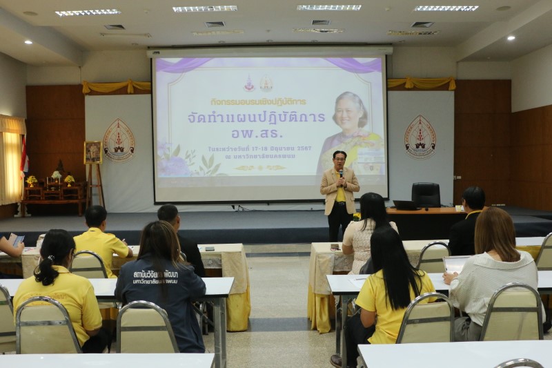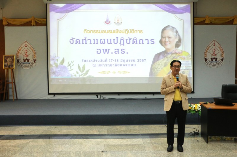 วันที่ 17 มิถุนายน 2567 เวลา 09.30 น. สถาบันวิจัยและพัฒนา มหาวิทยาลัยนครพนม จัดกิจกรรมอบรมเชิงปฏิบัติการจัดทำแผนปฏิบัติการโครงการอนุรักษ์พันธุกรรมพืชอันเนื่องมาจากพระราชดำริ สมเด็จพระเทพรัตนราชสุดาฯ สยามบรมราชกุมารี (อพ.สธ) โดยมี ศาสตราจารย์ ดร.ธวัชชัย ศุภดิษฐ์ รักษาราชการแทนอธิการบดีมหาวิทยาลัยนครพนม เป็นประธานกล่าวเปิดงาน มีรองศาสตราจารย์ ดร.กรไชย พรลภัสรชกร รองอธิการบดีฝ่ายการคลัง วิจัยและบริการวิชาการ กล่าวรายงาน พร้อมด้วยคณะผู้บริหาร คณาจารย์บุคลากรเจ้าหน้าที่เกี่ยวข้อง จากคณะ/วิทยาลัย เข้าร่วมกิจกรรมอบรมเชิงปฏิบัติการฯ และได้รับเกียรติจาก ดร.ปิยรัษฏ์ ปริญญาพงษ์ ผู้ช่วยผู้อำนวยการและเลขานุการคณะกรรมการดำเนินงาน อพ.สธ. เป็นวิทยากรบรรยายให้ความรู้ในหัวข้อ "แนวทางแผนแม่บทโครงการอนุรักษ์พันธุกรรมพืชอันเนื่องมาจากพระราชดำริ สมเด็จพระเทพรัตนราชสุดาฯ สยามบรมราชกุมารี (อพ.สธ)" ในระหว่างวันที่ 17-18 มิถุนายน 2567 ณ ห้องพนมนาคา ชั้น 5 สำนักงานอธิการบดี มหาวิทยาลัยนครพนม เขตพื้นที่ศรีโคตรบูรณ์