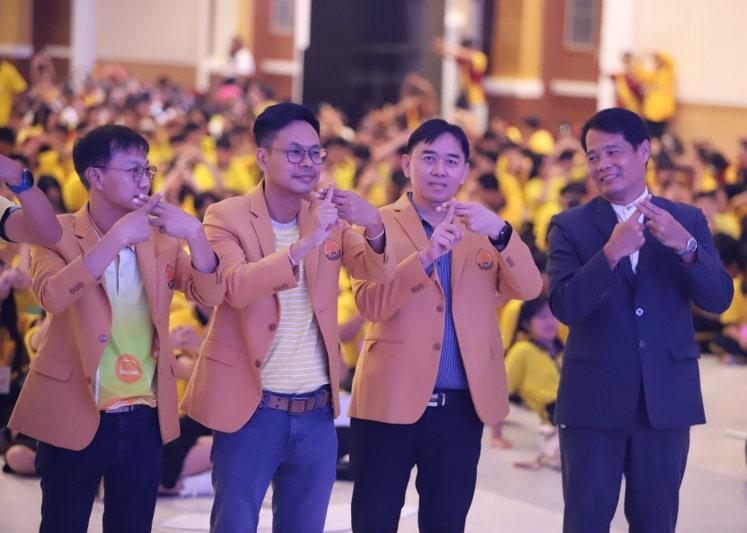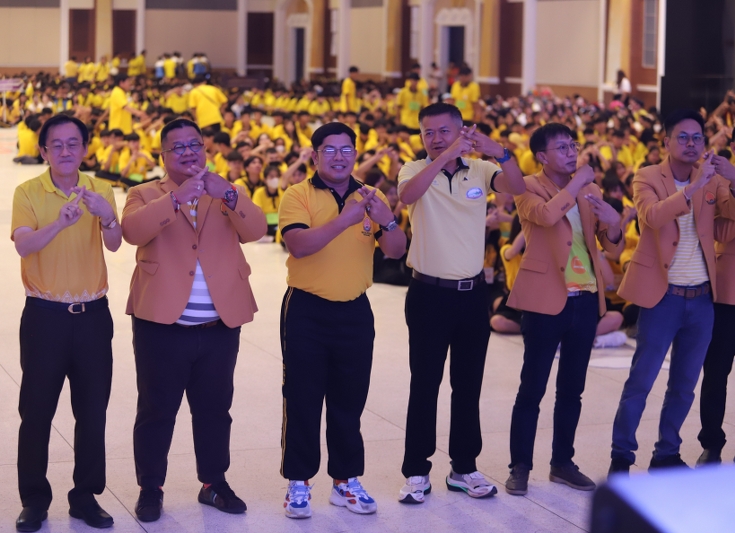 Then, in the afternoon at 1:00 PM. Approximately, the Student Discipline and Welfare Division, Student Development Office, organized a symbolic campaign activity for a smoke-free university and against drug abuse during the orientation for new Nakhon Phanom University students for the academic year 2024. As many as 2,000 students participated in the activity, which was attended by Professor Dr. Thawatchai Supadit, Acting President of Nakhon Phanom University, led students in a symbolic campaign at the Mekong Subregional Conference Hall (Mrukkanakhon area).