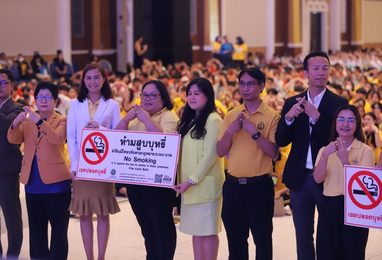 This event is a campaign in line with the policy of the Ministry of Higher Education, Science, Research and Innovation (MHESI). To drive the operation of educational institutions at the higher education level to be free of cigarets and drugs, which coincides with the activities of the Office of the Narcotics Control Board (ONCB). P. S. The Ministry of Justice, which designates June 26th of each year as World Drug Day, based on the concept "Uniting Thais to Build Families, Warm Communities, and Overcome the Drug Threat," aims to protect the health of students and personnel from diseases caused by cigarets, e-cigarettes, and all types of drugs in higher education institutions. This initiative seeks to reduce health risk factors and the number of new drug users, ultimately serving as a positive example for society.