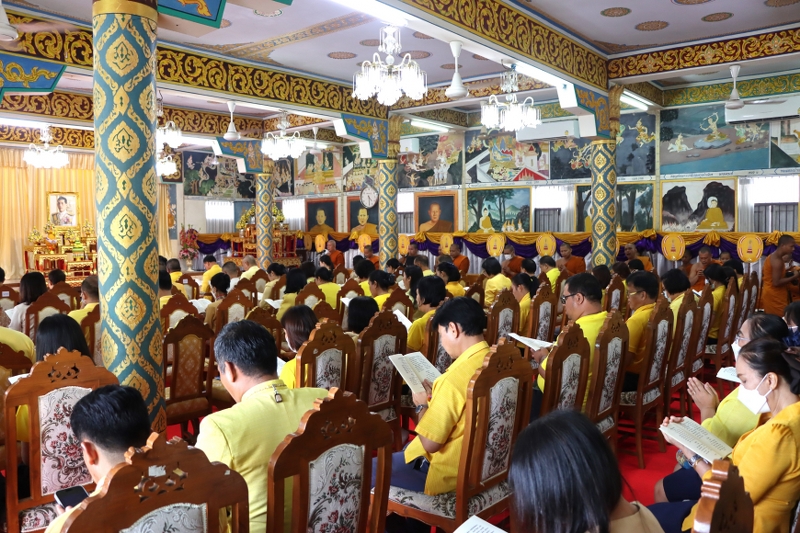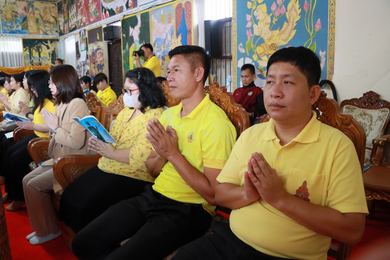 โดยนายวันชัย จันทร์พร ผู้ว่าราชการจังหวัดนครพนม ได้จุดธูปเทียนบูชาพระรัตนตรัย เปิดกรวยถวายราชสักการะหน้าพระบรมฉายาลักษณ์พระบาทสมเด็จพระเจ้าอยู่หัว จากนั้นประธานฝ่ายสงฆ์นำผู้ร่วมพิธีเจริญพระพุทธมนต์ เจริญสมาธิภาวนาถวายเป็นพระราชกุศล
