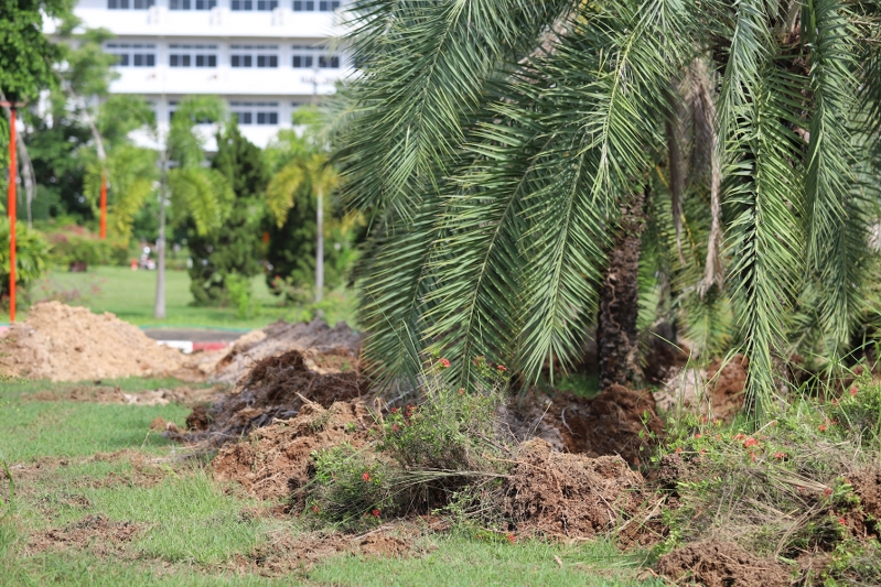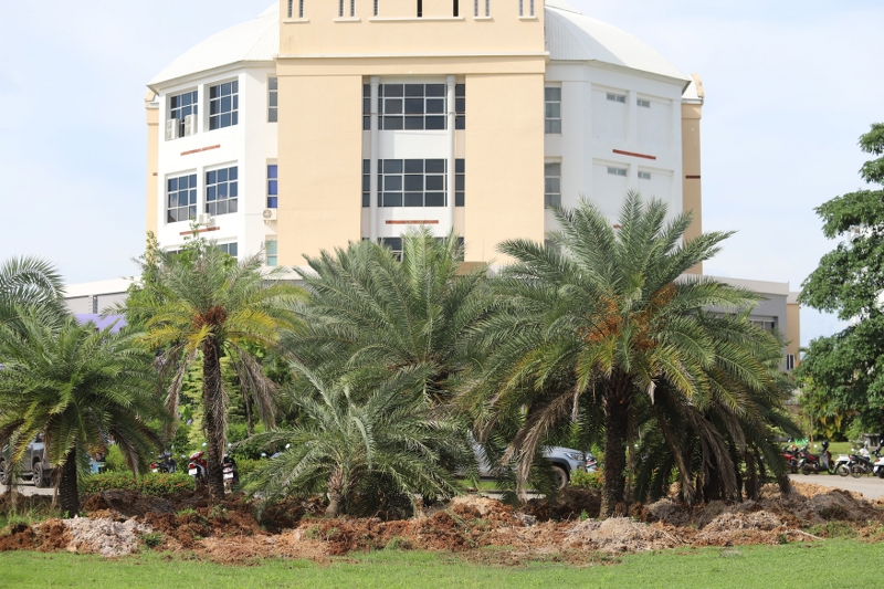 สำหรับต้นปาล์มที่ทำการรื้อถอน หรือทำการขุด จะนำไปปลูกในพื้นที่โดยรอบของอาคารหอประชุมอนุภูมิภาคลุ่มน้ำโขง เพื่อเพิ่มความสวยงามด้านภูมิทัศน์แก่อาคารหอประชุม