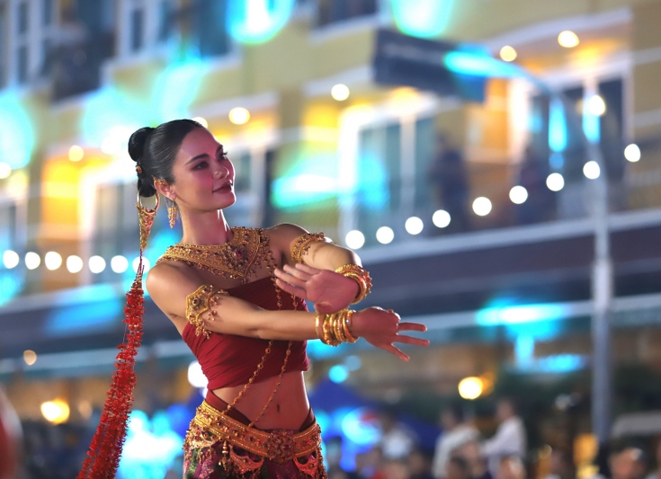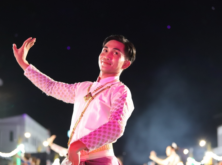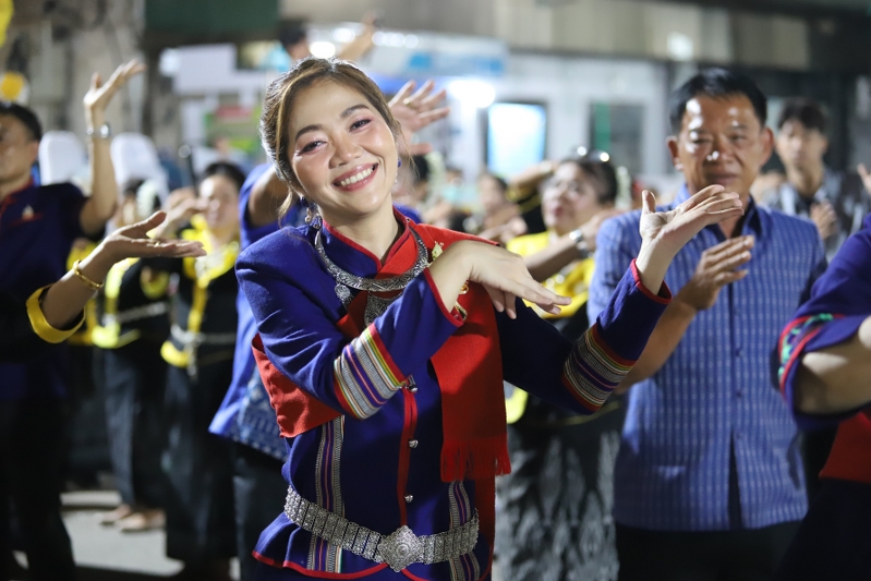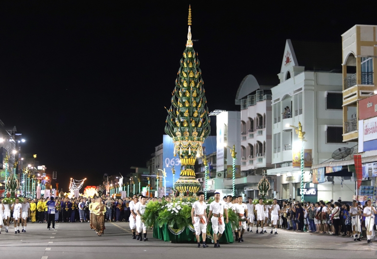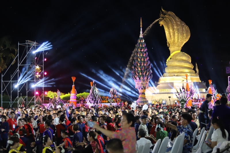 กิจกรรม เริ่มตั้งแต่ เวลา 19.00 น. โดยขบวนแห่เริ่มจากถนนนิตโย (บริเวณหน้าธนาคารกรุงไทย) มีนางรำมาจากหลากหลายพื้นที่ รวมกว่า 1,000 คน เคลื่อนขบวนเข้ามายังแลนด์มาร์คองค์พญาศรีสัตตนาคราช ซึ่งเป็นปะรำพิธีบวงสรวง มีหัวหน้าส่วนราชการ รัฐวิสาหกิจ ร่วมขบวนแห่ ซึ่งปีนี้ได้รับเกียรติจาก “น้ำตาล” ชลิตา ส่วนเสน่ห์ มิสยูนิเวิร์สไทยแลนด์ 2559 พร้อมด้วย “ชมพู่” พรพรรณ เกิดปราชญ์ นักกีฬาวอลเล่ย์บอลหญิงทีมชาติไทย ร่วมรำบวงสรวง