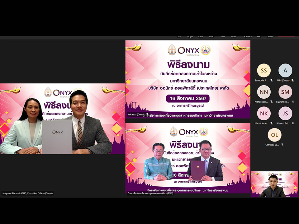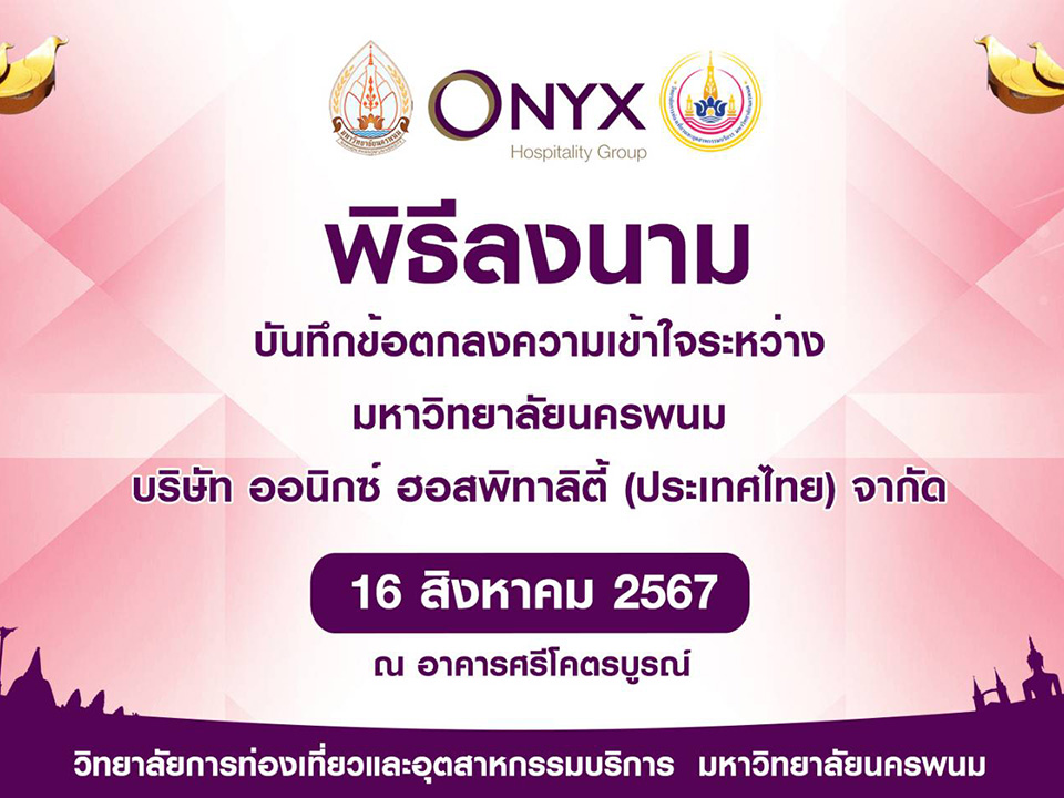 วิทยาลัยการท่องเที่ยวและอุตสาหกรรมบริการ ม.นครพนม จัดพิธีลงนามบันทึกข้อตกลงความเข้าใจกับ บริษัท ออนิกซ์ ฮอสพิทาลิตี้ (ประเทศไทย) จำกัด