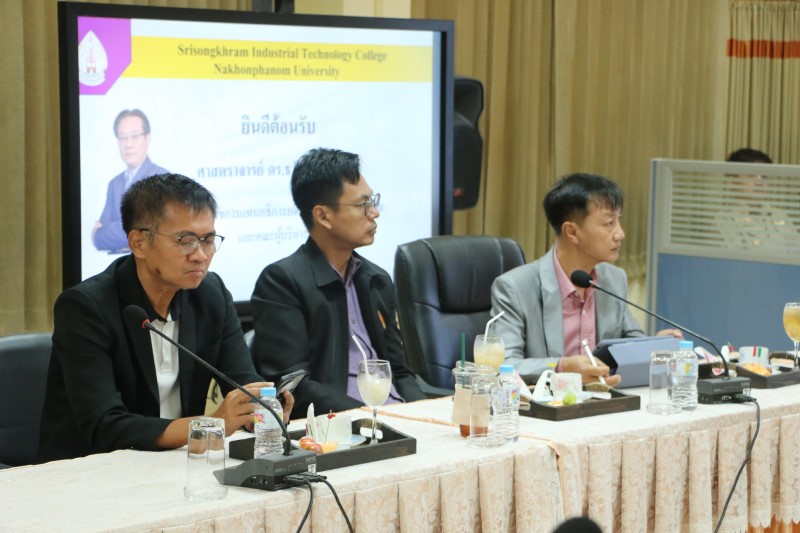 วันที่ 3 กันยายน 2567 เวลา 09.30 น. ศาสตราจารย์ ดร.ธวัชชัย ศุภดิษฐ์ รักษาราชการแทนอธิการบดีมหาวิทยาลัยนครพนม พร้อมคณะผู้บริหาร ลงพื้นที่ตรวจเยี่ยมวิทยาลัยเทคโนโลยีอุตสาหกรรมศรีสงคราม มหาวิทยาลัยนครพนม เพื่อมอบนโยบายการบริหารรวมถึงรับฟังปัญหาและอุปสรรคต่าง ๆ ในการดำเนินงานของของวิทยาลัยเทคโนโลยีศรีสงคราม เพื่อนำมาเป็นข้อมูลมาจัดทำแผนพัฒนาให้สอดคล้องกับแผนยุทธศาสตร์มหาวิทยาลัยนครพนมต่อไป ในการลงพื้นที่ครั้งนี้มี ดร.เอนก นรสาร ผู้อำนวยการวิทยาลัยเทคโนโลยีอุตสาหกรรมศรีสงคราม พร้อมด้วยคณาจารย์ บุคลากร เจ้าหน้าที่ ให้การต้อนรับ ณ ห้องประชุมนิติพจน์ ชั้น 2 อาคารอำนวยการ วิทยาลัยเทคโนโลยีศรีสงคราม มหาวิทยาลัยนครพนม