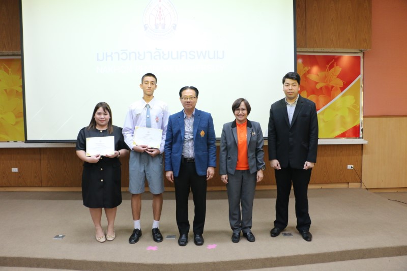 - รางวัลประกาศเกียรติคุณนักวิจัยที่ด าเนินงานจนเกิดผลนำไปสู่นโยบายการพัฒนาของจังหวัดนครพนม ในโครงการส่งเสริมเศรษฐกิจชุมชนคนนครพนม “จากใบตองกล้วยธรรมดาสู่มูลค่าเพิ่มทางเศรษฐกิจ”