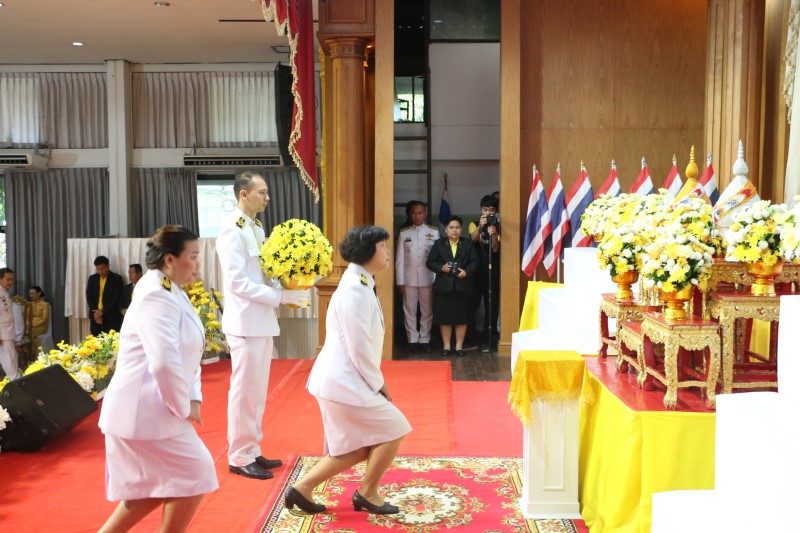 ต่อมาเวลา 08.00 น. อาจารย์ ดร.ปรีดารี ศิริรัตน์ รองคณบดีฝ่ายนโยบายและแผนและพัฒนานักศึกษา วิทยาลัยการท่องเที่ยวและอุตสาหกรรมบริการ พร้อมด้วยบุคลากรเจ้าหน้าที่ มหาวิทยาลัยนครพนม เข้าร่วมพิธีวางพานพุ้มดอกไม้ราชสักการะเนื่องในวันพระบรมราชสมภพรัชกาลที่ 9 วันชาติ และวันพ่อแห่งชาติ 5 ธ.ค. 2567 ณ หอประชุมมรุกขนคร โรงเรียนนครพนมวิทยาคม ตำบลในเมือง อำเภอเมืองนครพนม จังหวัดนครพนม