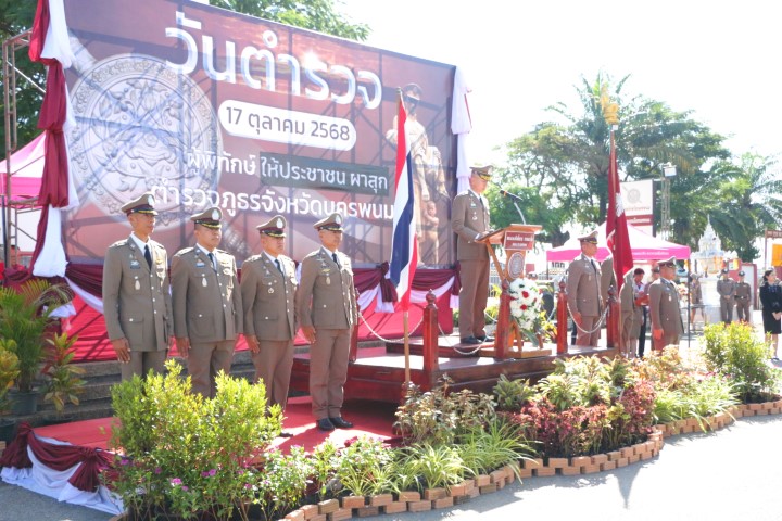 วันที่ 17 ตุลาคม 2568 เวลา 08.00 น. ผู้ช่วยศาสตราจารย์ ดร.ถนอม ทาทอง รองอธิการบดีฝ่ายแผนและงบประมาณ มหาวิทยาลัยนครพนม เข้าร่วม พิธีกล่าวคำสัตย์ปฏิญาณตนของข้าราชการตำรวจ เนื่องใน “วันตำรวจ” ประจำปี 2568 พร้อมด้วยหัวหน้าส่วนราชการจังหวัดนครพนม โดยมี พล.ต.ต. ศักดิ์ชาย สาดมะเริง ผู้บังคับการตำรวจภูธรจังหวัดนครพนม เป็นประธานในพิธี ณ ตำรวจภูธรจังหวัดนครพนม อำเภอเมือง จังหวัดนครพนม