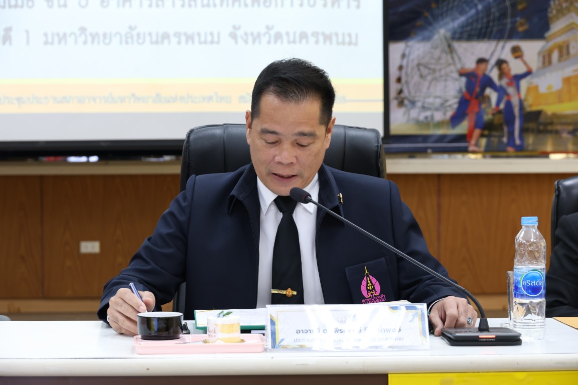 วันที่ 20 ธันวาคม 2568 เวลา 09.00 น. มหาวิทยาลัยนครพนม เป็นเจ้าภาพจัดการประชุมประธานสภาอาจารย์มหาวิทยาลัยประเทศไทย (ปอมท.) สมัยสามัญ ครั้งที่ 12/2568 โดย ศาสตราจารย์เกียรติคุณ ดร.ธวัชชัย ศุภดิษฐ์ อธิการบดีมหาวิทยาลัยนครพนม มอบหมายให้ ผู้ช่วยศาสตราจารย์ ดร.ถนอม ทาทอง รองอธิการบดีฝ่ายแผนและงบประมาณ ให้การต้อนรับและเป็นประธานกล่าวเปิดการประชุม