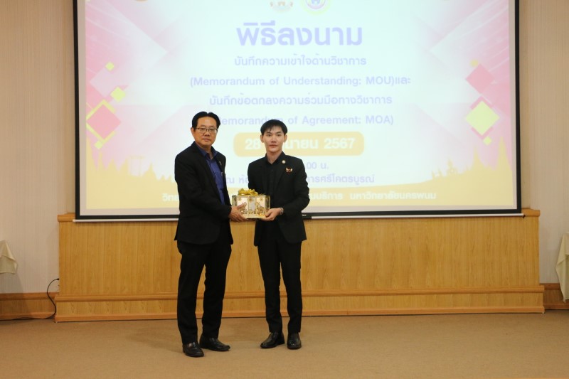 โดยมี ศาสตราจารย์ ดร.ธวัชชัย ศุภดิษฐ์ รักษาราชการแทนอธิการบดีมหาวิทยาลัยนครพนม และ ผู้ช่วยศาสตราจารย์ ดร.พรศักดิ์ ยตะโคตร รักษาราชการแทน คณบดีวิทยาลัยการท่องเที่ยวและอุตสาหกรรมบริการ ลงนามใน MOU บันทึกข้อตกลงความร่วมมือทางวิชาการ กับ ดร.พิศุทธิ์ กิติศรีวรพันธุ์ ผู้อำนวยการสำนักงานเขตพื้นที่การศึกษามัธยมศึกษานครพนม นายฉัตรชัย ไชยมงค์ รองผู้อำนวยการสำนักงานเขตพื้นที่การศึกษามัธยมศึกษานครพนม และ นายกันตพัฒน์ ลัทธ์พิพัฒนดล รองผู้อำนวยการโรงเรียนบ้านข่าพิทยาคม รักษาการในตำแหน่งผู้อำนวยการโรงเรียนบ้านข่าพิทยาคม นางพรรณี ฤาชากุล ครูชำนาญการพิเศษ โรงเรียนบ้านข่าพิทยาคม โดยมี ผู้ช่วยศาสตราจารย์ ดร.ปรัชญา ธงพานิช ผู้ช่วยอธิการบดีฝ่ายสารสนเทศและการศึกษาสมัยใหม่ อาจารย์บุญธรรม ข่าขันมะณี ผู้ช่วยคณบดีฝ่ายวิชาการ วิทยาลัยการท่องเที่ยวและอุตสาหกรรมบริการ และบุคลากรเจ้าหน้าที่ นักศึกษา ร่วมเป็นสักขีพยานในการลงนามในครั้งนี้