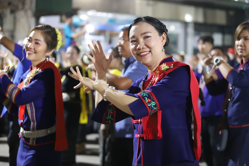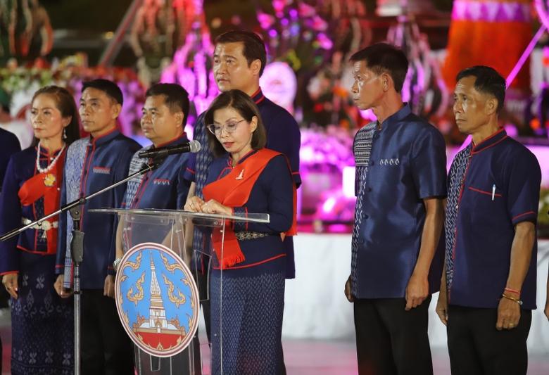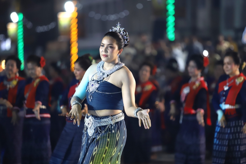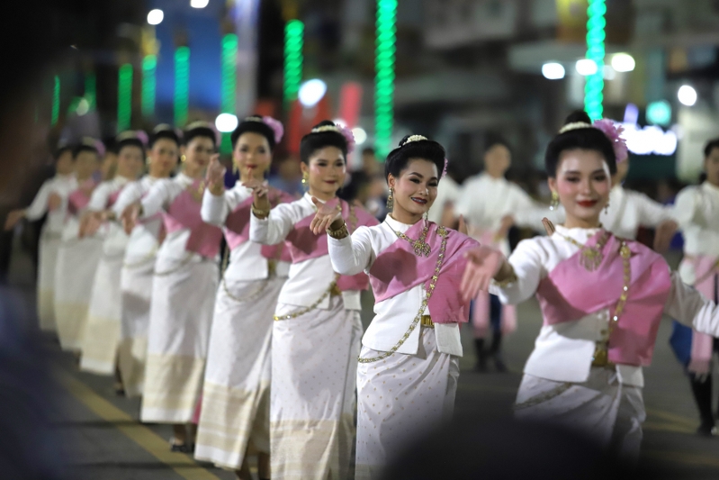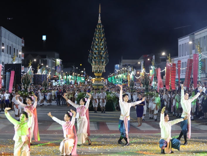 กิจกรรม เริ่มตั้งแต่ เวลา 19.00 น. โดยขบวนแห่เริ่มจากถนนนิตโย (บริเวณหน้าธนาคารกรุงไทย) มีนางรำมาจากหลากหลายพื้นที่ รวมกว่า 1,000 คน เคลื่อนขบวนเข้ามายังแลนด์มาร์คองค์พญาศรีสัตตนาคราช ซึ่งเป็นปะรำพิธีบวงสรวง มีหัวหน้าส่วนราชการ รัฐวิสาหกิจ ร่วมขบวนแห่ ซึ่งปีนี้ได้รับเกียรติจาก “น้ำตาล” ชลิตา ส่วนเสน่ห์ มิสยูนิเวิร์สไทยแลนด์ 2559 พร้อมด้วย “ชมพู่” พรพรรณ เกิดปราชญ์ นักกีฬาวอลเล่ย์บอลหญิงทีมชาติไทย ร่วมรำบวงสรวง