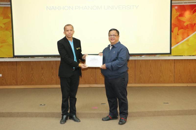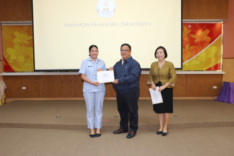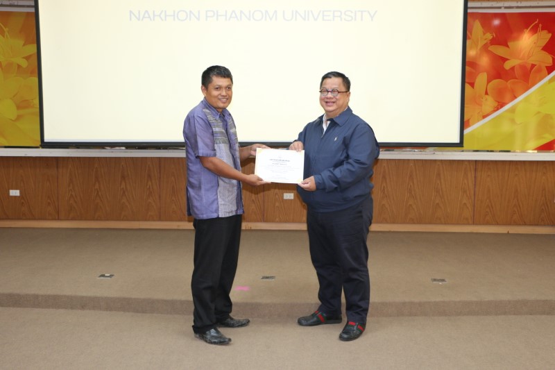 ซึ่งก่อนเริ่มประชุม รองศาสตราจารย์ ดร.กรไชย พรลภัสรชกร รองอธิการบดีฝ่ายการคลัง วิจัยและบริการวิชาการ ได้มอบเกียรติบัตรเชิดชูเกียรติให้แก่ คณาจารย์ บุคลากร นักศึกษา นักเรียน ที่สร้างชื่อเสียงให้แก่มหาวิทยาลัยนครพนม จนได้รับรางวัลในระดับต่างๆ ดังนี้