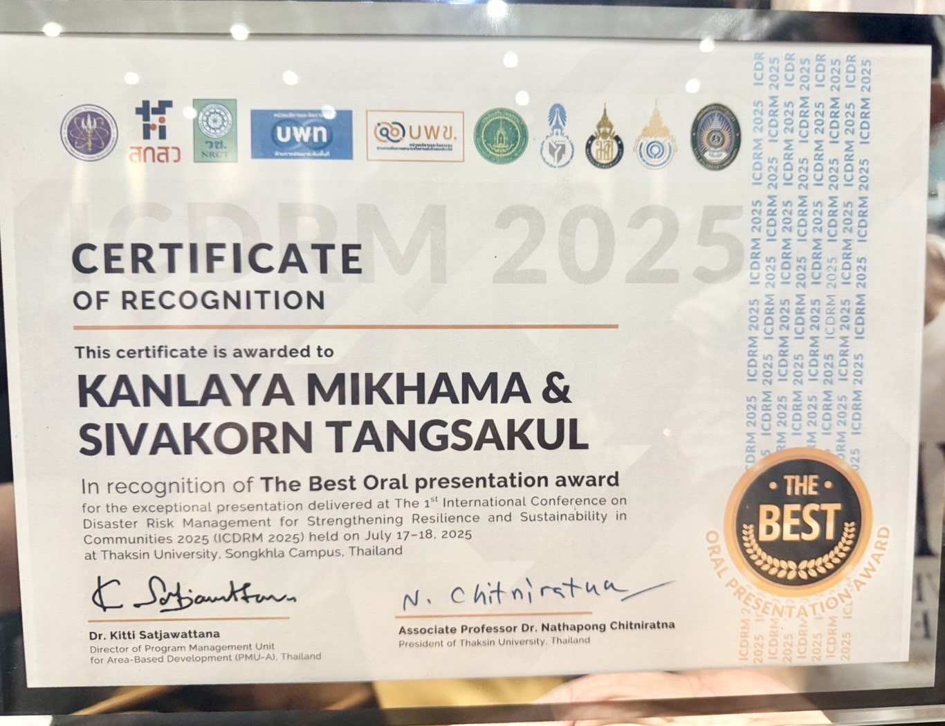 นักวิจัยมหาวิทยาลัยนครพนม คว้ารางวัลนำเสนอบทความยอดเยี่ยม บนเวทีประชุมวิชาการนานาชาติ ICDRM 2025
