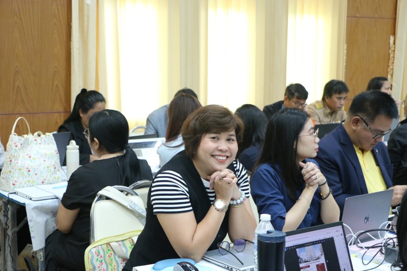 บรรยากาศการอบรมเต็มไปด้วยความสนใจและมีการแลกเปลี่ยนเรียนรู้เชิงวิชาการอย่างเข้มข้น สะท้อนถึงความมุ่งมั่นของมหาวิทยาลัยในการพัฒนาคุณภาพหลักสูตรให้ได้มาตรฐานระดับสากล