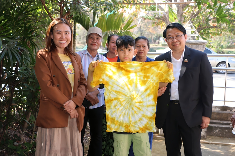 จากนั้น คณะฯ ได้เยี่ยมชม ศูนย์วิสาหกิจชุมชนธาตุพนมแฮนด์คราฟ อำเภอธาตุพนม เพื่อชมกระบวนการผลิตผ้ามัดย้อมสีจากดอกดาวเรือง ตั้งแต่ขั้นตอนการเตรียมวัตถุดิบ การย้อมสี ไปจนถึงการพัฒนาผลิตภัณฑ์เชิงสร้างสรรค์ โดยมีชาวบ้าน ผู้เข้าร่วมโครงการ และปราชญ์ชุมชน ร่วมให้ข้อมูลและแลกเปลี่ยนประสบการณ์แก่คณะผู้ตรวจราชการฯ สะท้อนถึงการบูรณาการองค์ความรู้จากมหาวิทยาลัยสู่ชุมชนอย่างเป็นรูปธรรม