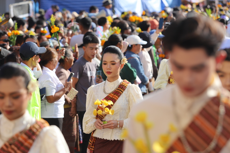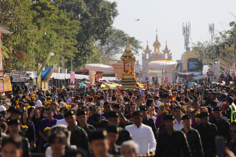 พิธีดังกล่าวได้รับเกียรติจาก ว่าที่พันตรี อดิศักดิ์ น้อยสุวรรณ ผู้ว่าราชการจังหวัดนครพนม เป็นประธานในพิธี พร้อมด้วย นางฐาปนา รักติประกร รองราชเลขานุการในพระองค์สมเด็จพระกนิษฐาธิราชเจ้า กรมสมเด็จพระเทพรัตนราชสุดา ฯ สยามบรมราชกุมารี นางอุไรรัตน์ น้อยสุวรรณ ประธานแม่บ้านมหาดไทยจังหวัดนครพนม รองผู้ว่าราชการจังหวัดนครพนม หัวหน้าส่วนราชการฝ่ายอัยการ ศาล ทหาร ตำรวจ ตลอดจนพุทธศาสนิกชน และนักท่องเที่ยวจากทั่วสารทิศ เข้าร่วมพิธีเป็นจำนวนมาก เพื่อความเป็นสิริมงคลแก่บ้านเมืองและผู้ร่วมงาน