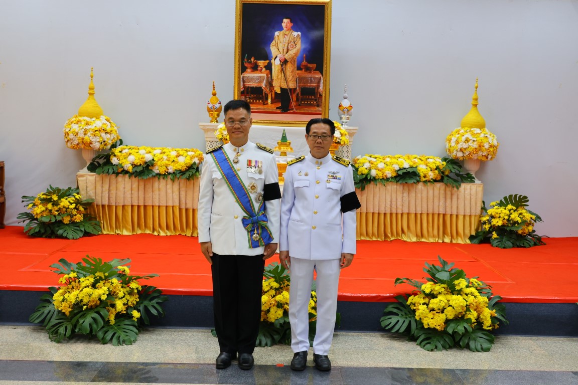 ศาสตราจารย์เกียรติคุณ ดร.ธวัชชัย ศุภดิษฐ์ อธิการบดีมหาวิทยาลัยนครพนม กล่าวว่าในนามมหาวิทยาลัยนครพนม ขอแสดงความชื่นชม กับข้าราชการ ลูกจ้าง พนักงานมหาวิทยาลัย และพนักงานราชการ ที่ได้รับพระราชทานเครื่องราชอิสริยาภรณ์ และเหรียญจักรพรรดิมาลาทุกท่าน ที่ได้อุทิศตนมุ่งมั่นปฏิบัติราชการด้วยดี มาตลอดจนถึงวันนี้ การได้รับพระราชทานเครื่องราชอิสริยาภรณ์ และเหรียญจักรพรรดิมาลา ถือว่าเป็นสิ่งที่มีคุณค่า เป็นมงคล เป็นเกียรติแก่ตนเองและครอบครัวเป็นอย่างยิ่ง เพราะเป็นเครื่องสรรเสริญ และยืนยันว่าเป็นผู้ที่มีความประพฤติดี มีความอุตสาหะ ซื่อสัตย์ และเอาใจใส่ต่อหน้าที่ บุคคลที่ได้รับพระราชทานเครื่องราชอิสริยาภรณ์ และเหรียญจักรพรรดิมาลาในวันนี้ ถือได้ว่าเป็นทรัพยากรบุคคลที่มหาวิทยาลัยนครพนมมีความภาคภูมิใจเป็นอย่างยิ่ง